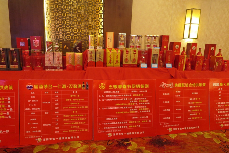 公司召开此次联谊会,提供了“茅台”、 “五粮液”、“国缘K系列”、“今世缘典藏系列”、“五粮春”、法国品酒大师葡萄酒、 “长荡湖”、“金六福”、“土家人”等系列酒的优惠政策。公司销售网络遍布溧阳市区及各乡镇,五粮春、国缘K系列及今世缘典藏系列酒以其香醇的酒质、实惠的价格,在宴请亲朋好友方面深受广大消费者喜爱,为满足消费者需求,为各重点客户和分销商提供更实惠的选择,会议当天更是优惠酬宾。