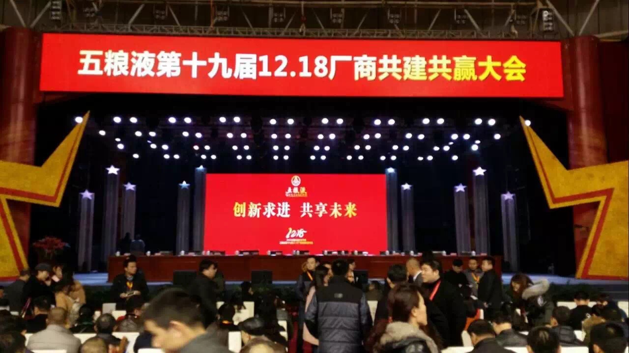 2015年12月18日,第十九届五粮液12.18厂商共建共赢经销商大会在宜宾五粮液酒厂大礼堂举行,今年的主题是“创新求进 共享未来”。四川省、宜宾市各级领导和酒协、厂方、经销商、媒体一千多人参加了这次盛会。