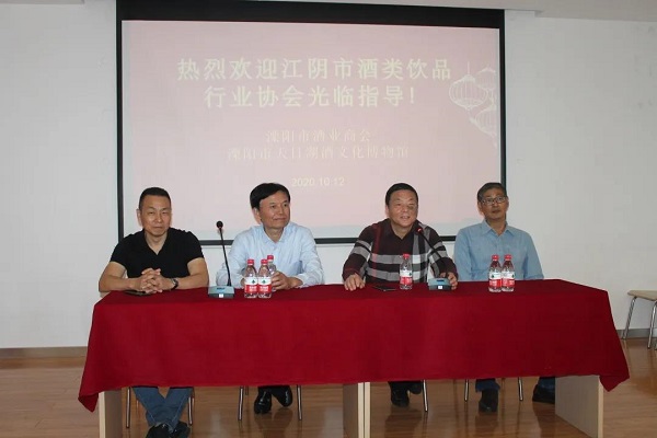 2020年10月12日下午,江阴市酒类饮品行业协会在名誉会长冯学峰、会长吴海军率领下,协会一行60多人来溧阳市酒业商会对口交流。