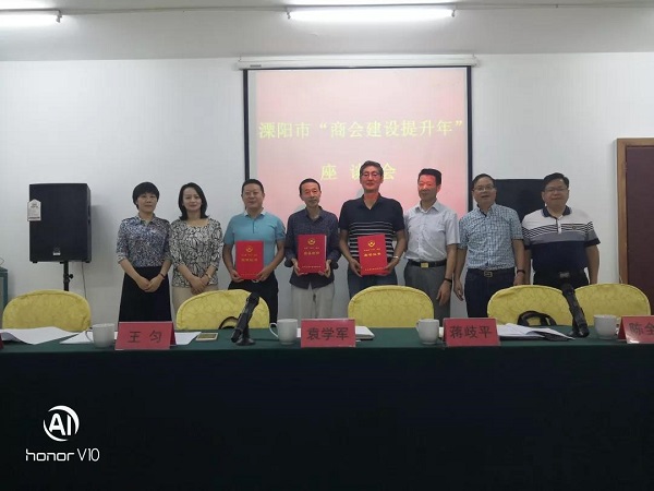 座谈会一是市工商联副主席陈全平对“商会建设提升年”活动开展情况进行回顾总结;二是常州市工商联副主席袁学军、秘书长王匀为2018 年度全国、全省“四好”商会颁奖,溧阳市酒业商会荣获省“四好”商会;三是基层商会交流发言;最后常州市工商联副主席袁学军就加强商会组织建设作了工作指示。