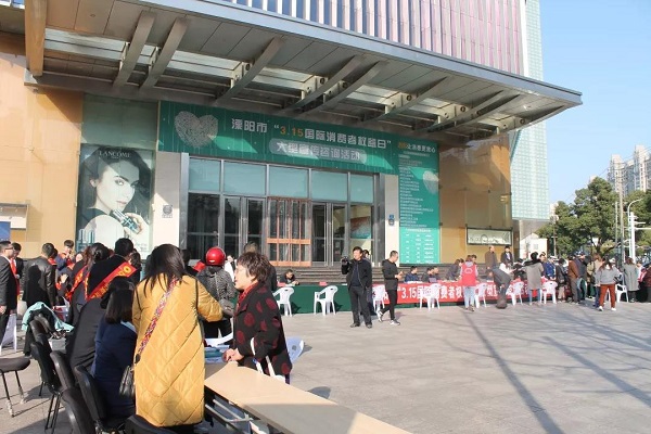 2019年3月12日上午,溧阳市市场监督管理局和市消费者协会牵头,会同溧阳市公安局、人民检察院、司法局、公安消防大队、酒业商会等十多家单位,在溧阳市八佰伴广场举办了“3.15国际消费者权益日”大型宣传咨询活动。本次活动的主题为“信用让消费者更放心”,旨在进一步提高消费者主动维权和自我保护的意识,提高广大经营者守法的自觉性,对我市市场环境的优化起积极效应。